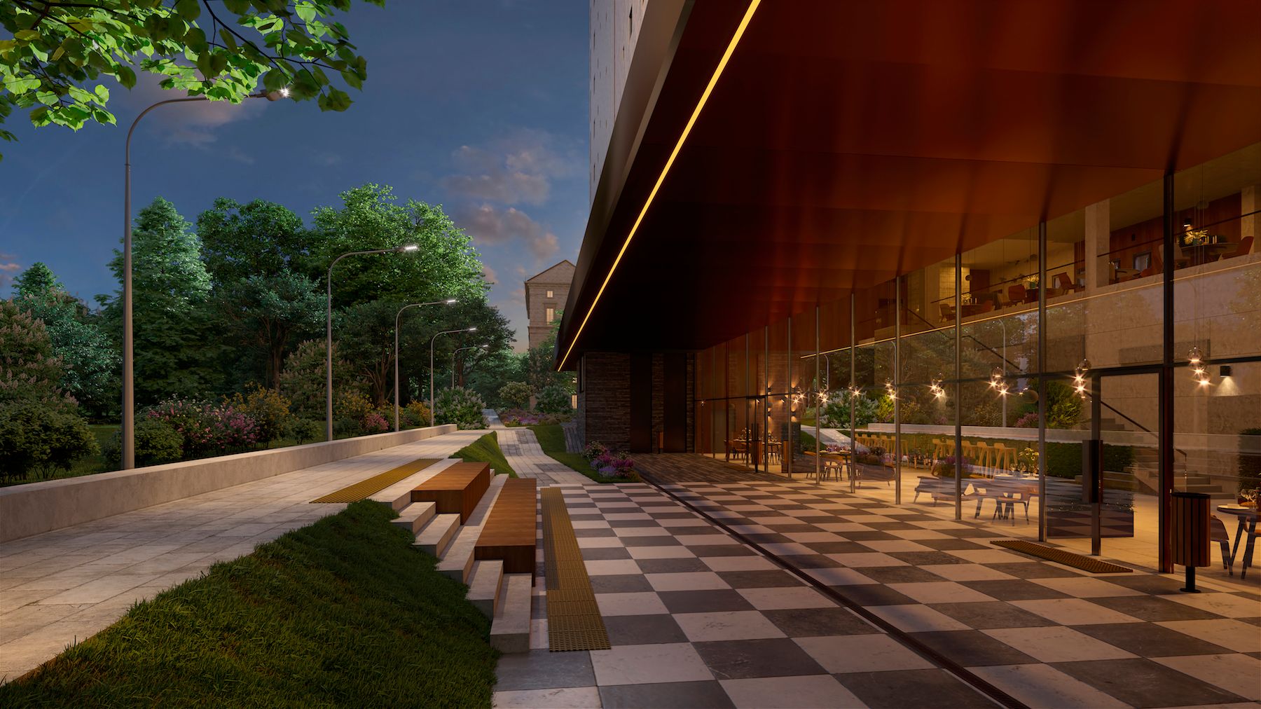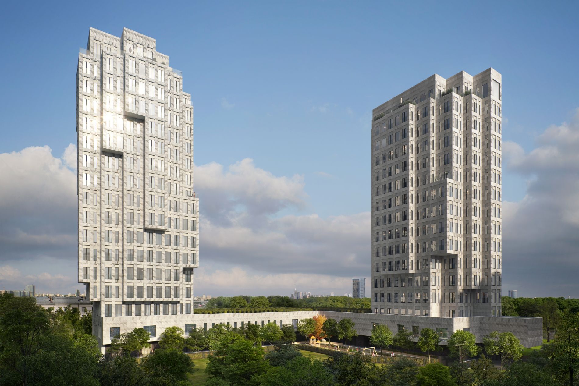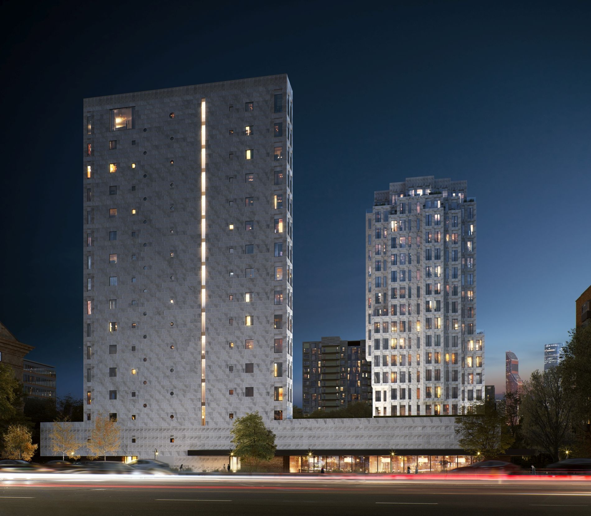 - два монолитных односекционных здания премиум-класса объединены между собой двухэтажной стилобатной частью