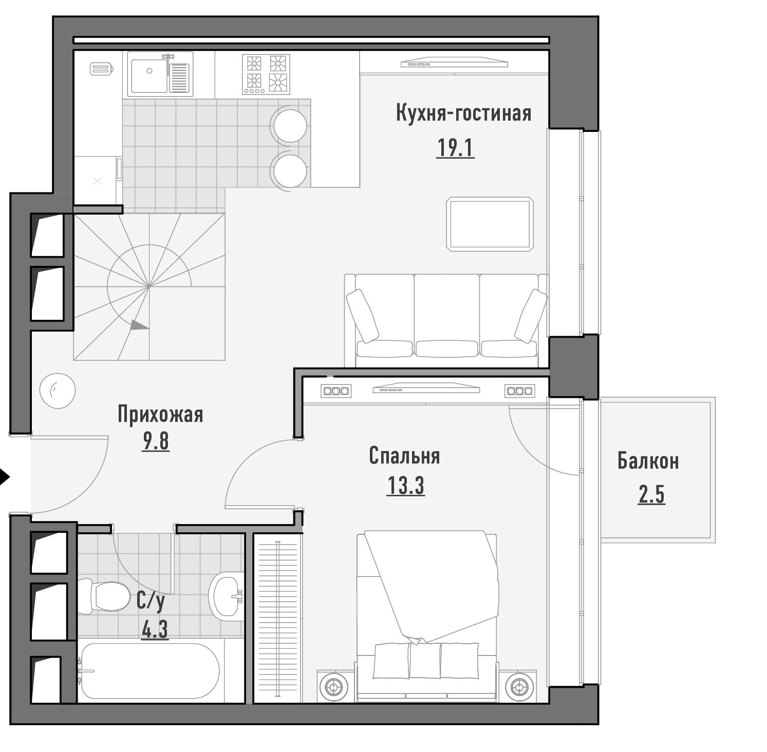 1 спальня
