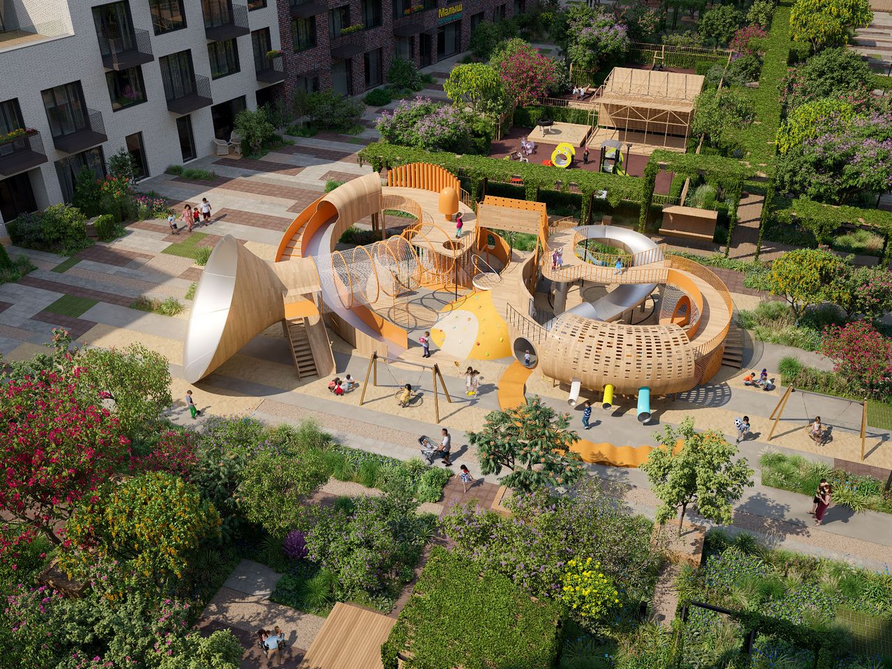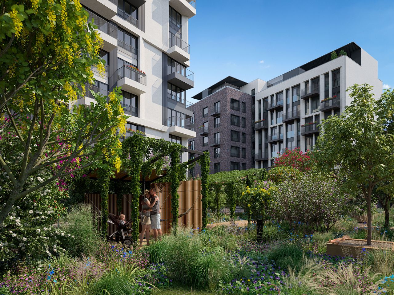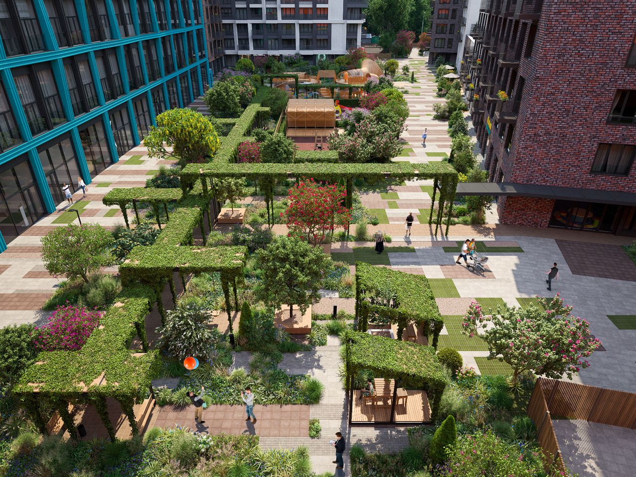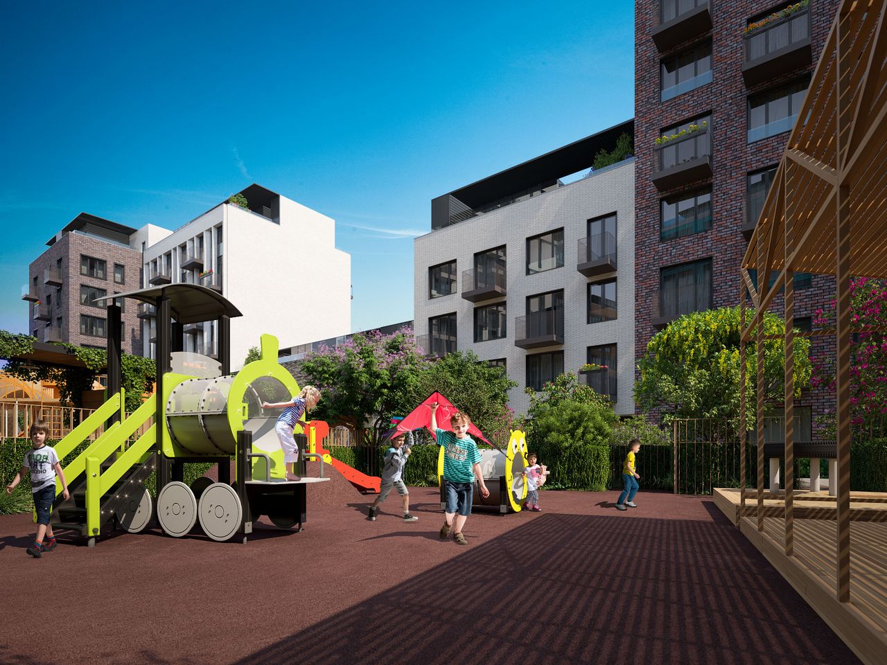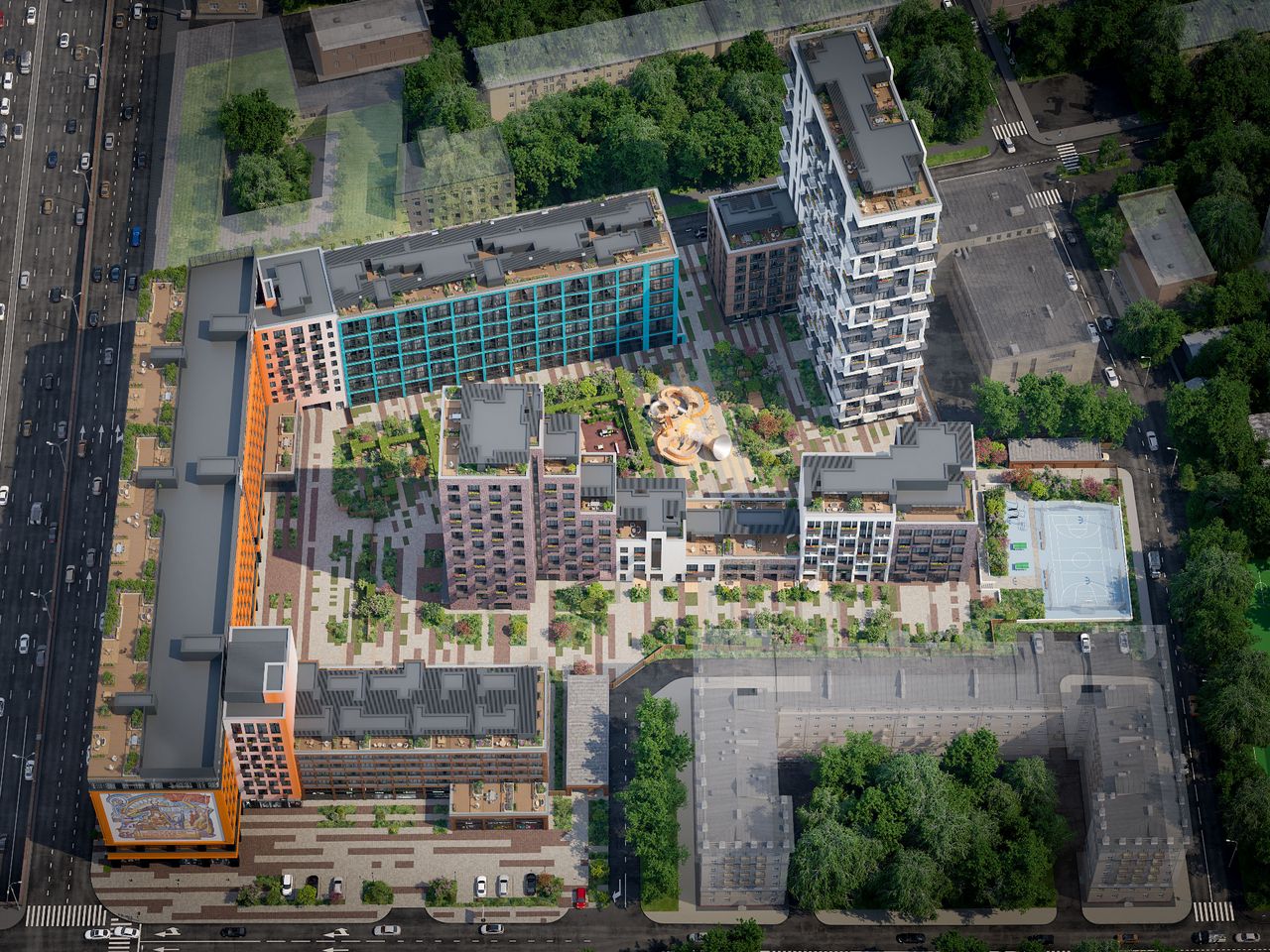 - двор-парк внутри квартала, где приятно посидеть в тени деревьев, пока ваши дети резвятся на одной из лучших детских площадок в Москве
