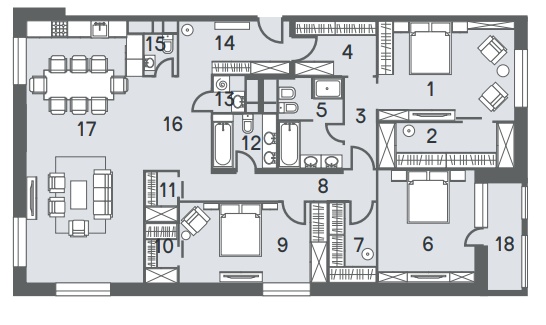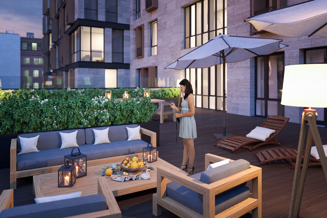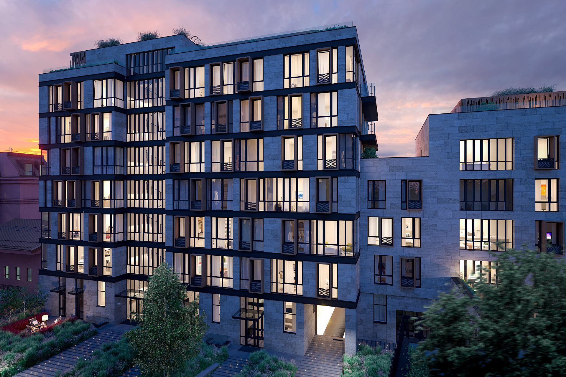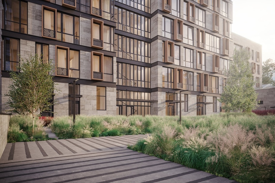 - шесть пентхаусов с каминами и выходом на крышу в главном корпусе, квартиры с террасами или собственными патио