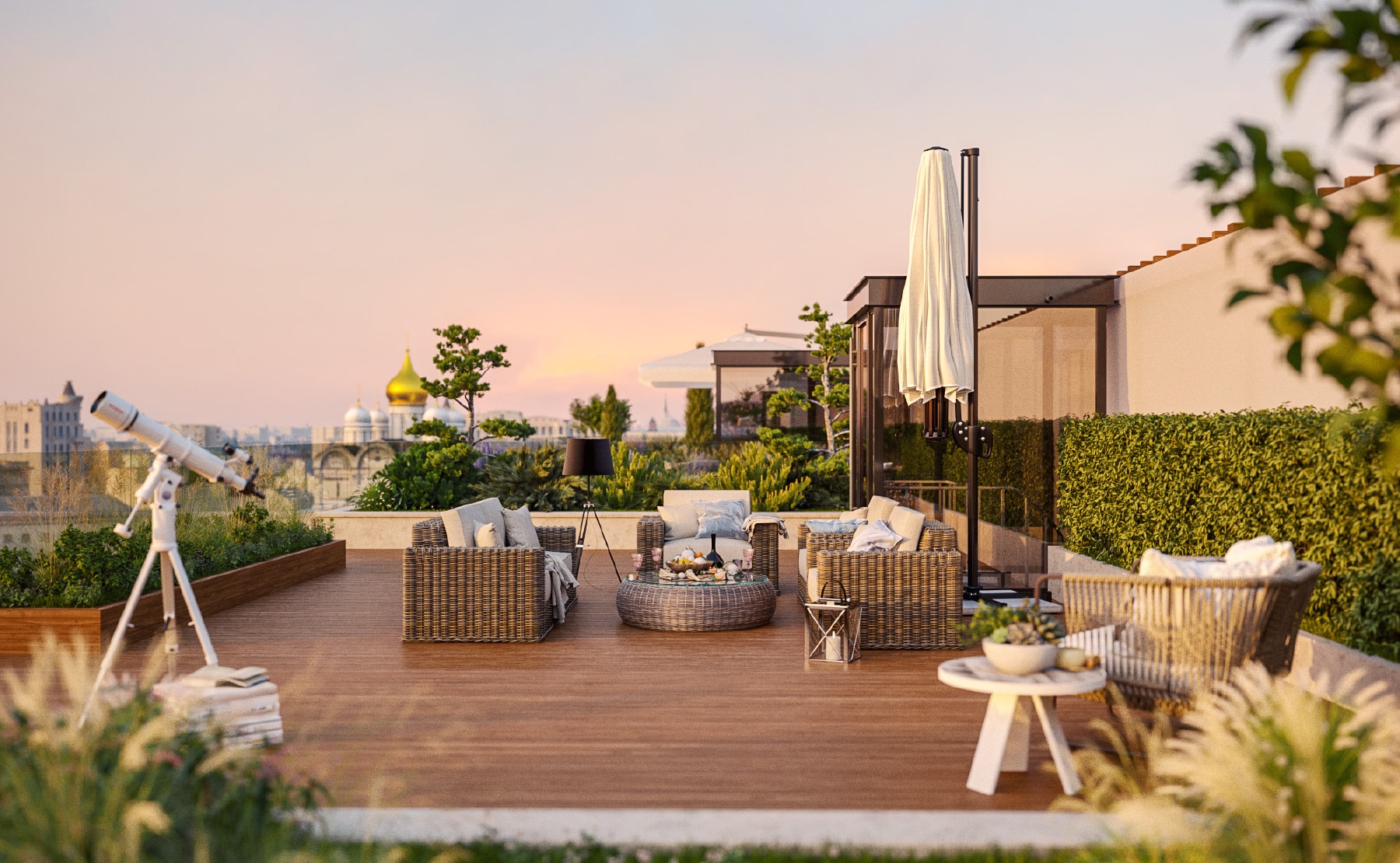 - собственный уютный двор-сад. Элегантный ландшафтный дизайн, удобные лавочки, уютные беседки и современная безопасная детская площадка, выполненная по индивидуальному дизайн-проекту.