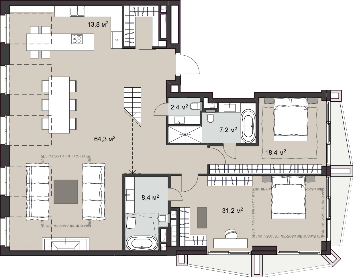 - пентхаусы с каминами и завораживающими видами на старую Москву.