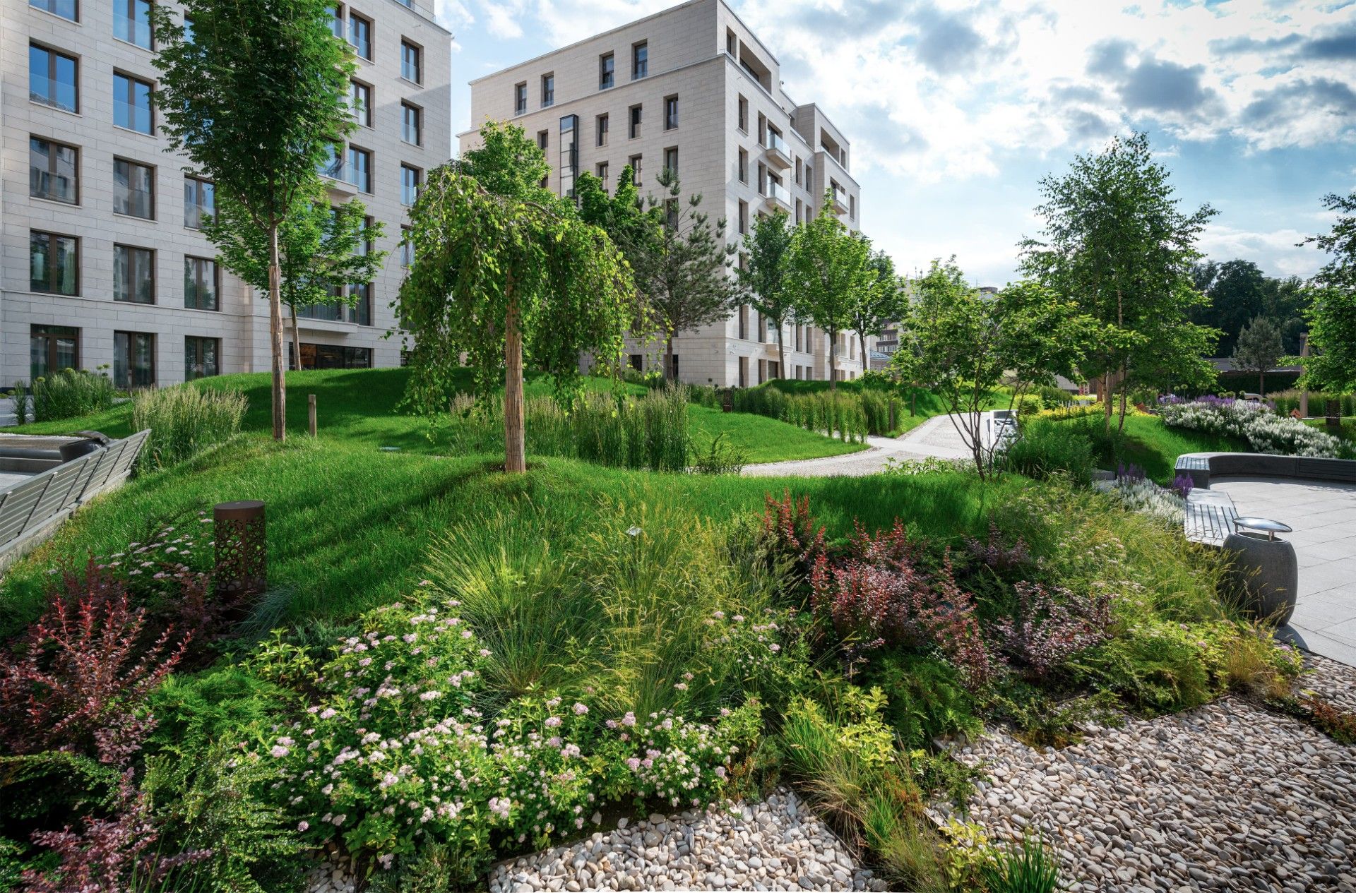 - 8 отдельно стоящих особняков высотой от 4 до 7 этажей с пентхаусами и террасами